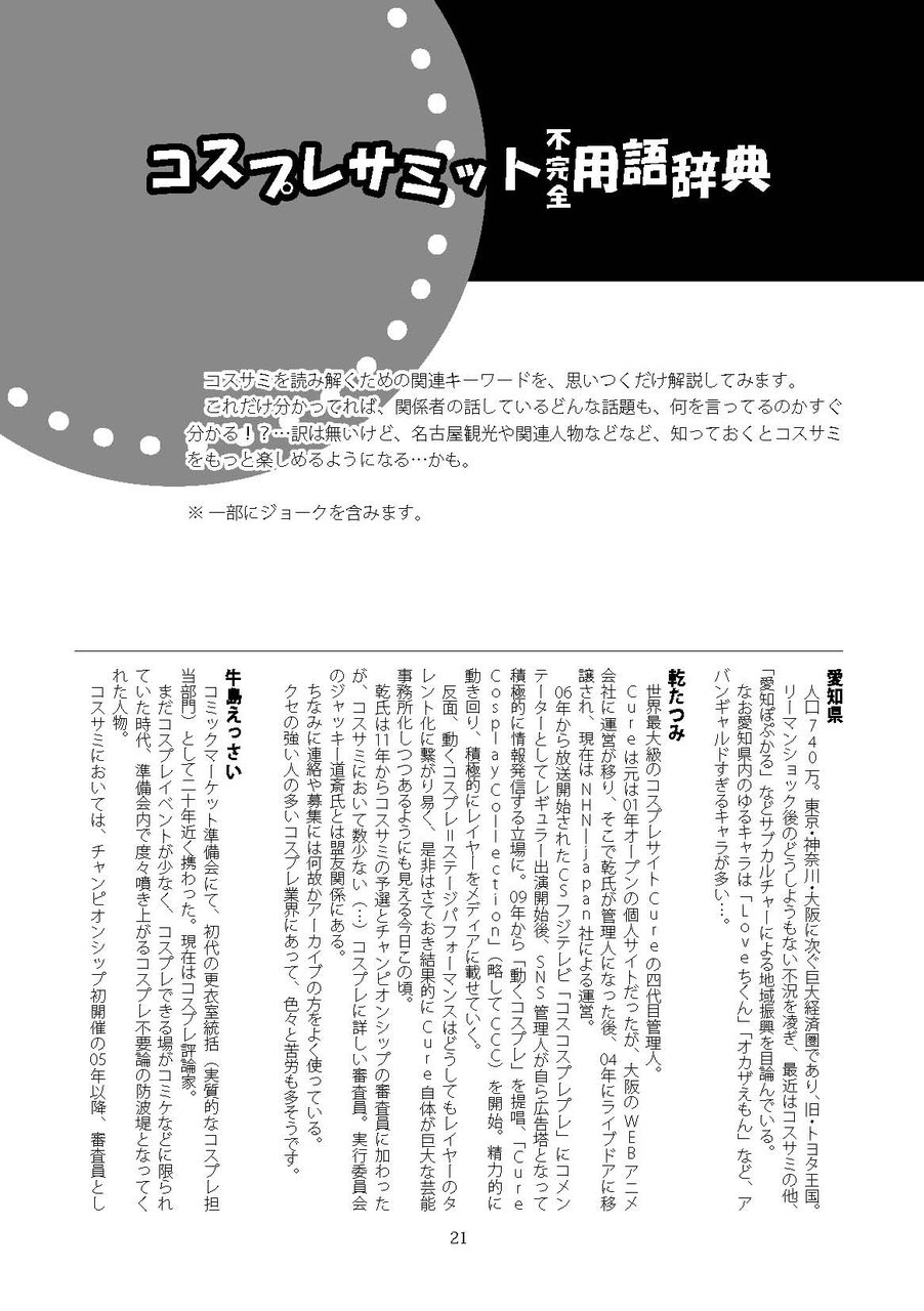 コスサミ関連の企業・団体・人物・会場・珍言…などなど、ナナメ視点から解説!