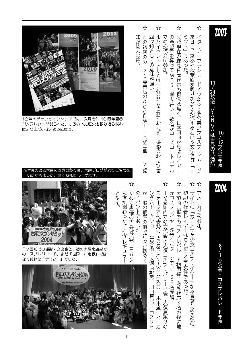 翌年の2004年からグッドウィルとテレビ愛知が共に「主催」の形になりまして、2005年は愛知万博のプログラムとして、チャンピオンシップによる順位付けと表彰が始まりました。これが盛り上がったので、以降はコスプレサミット=コスプレ世界一決定戦、みたいな流れになっていった訳です。