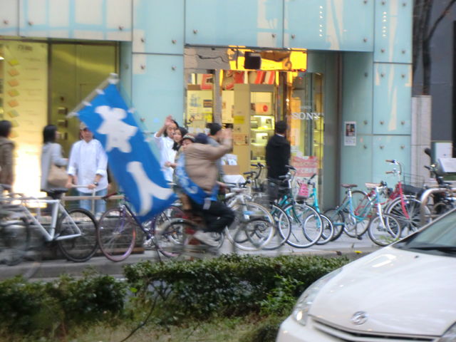 名古屋市長選という事で、河村市長と大村知事が自転車で行客するパフォーマンス中。