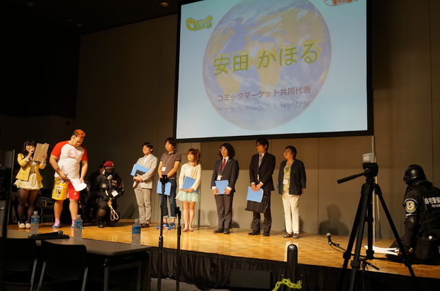 ・ 昨年度代表が審査員するのが恒例だが、2014日本代表チーム・婆娑羅の二人はコミケSP予選のみの登場で、この日はオクラこと媛次あずまさんがメッセージを寄せた。