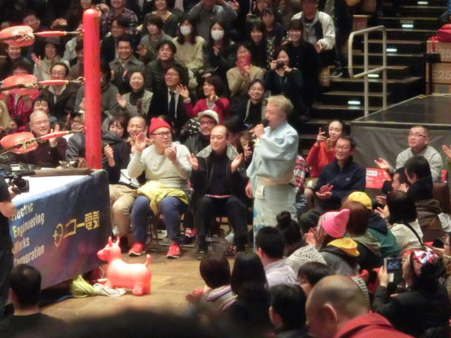前座の気仙沼二郎が登場し、この日CD発売された「俺の海」を熱唱するも、サスケはお気に召さず。