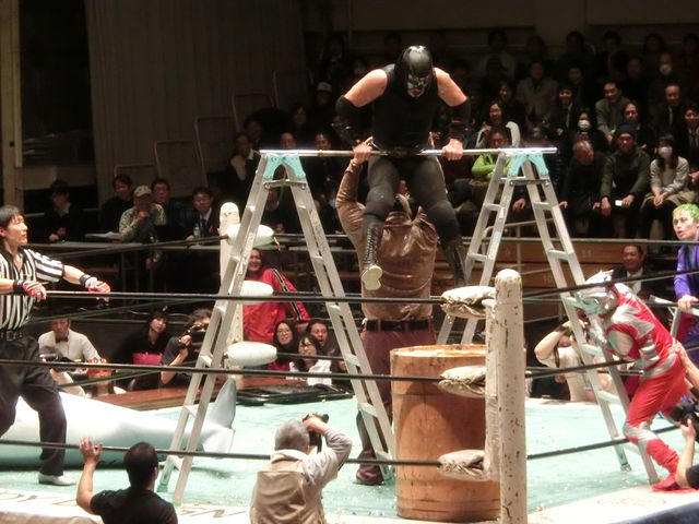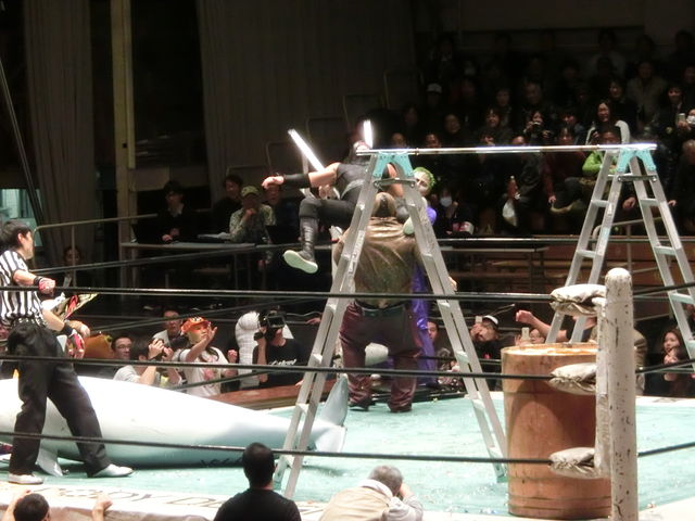 さらにサスケは試合を無視して脚立とパイプで鉄棒ごっこ再び…