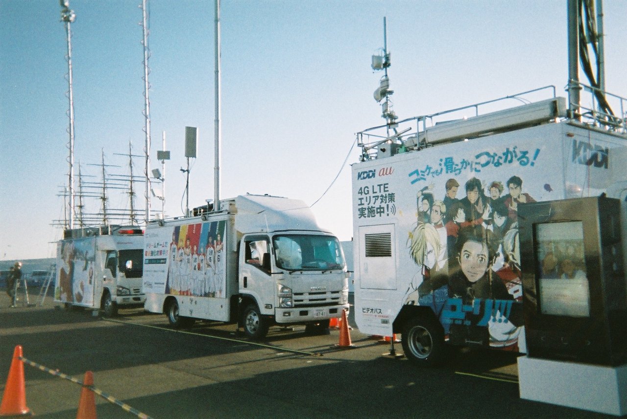 あくまで2016年末の写真だよ!auの通信車がユーリでソフトバンクが黒バスだよ!!