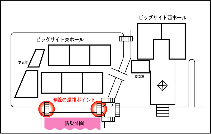 だって防災公園ってコミケ会場ではなく、コミケと提携してる献血イベントの会場ですから。厳密には管轄が異なってるそうです。