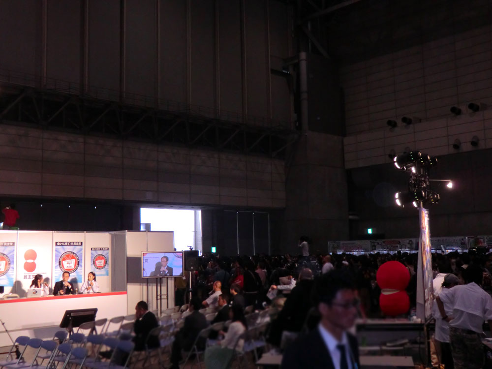 そして見るも無残だったのが民主党。講演メインでブースを組んだのがまずかった(広告代理店が付いてなかったのかな?)。