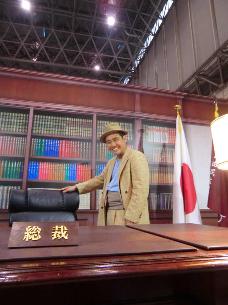 ブースの使い方としては非常に上手い。政治色・政策色をあまり出さず、ひたすら記念撮影スポットと化してイメージの浸透を狙うスタイル。