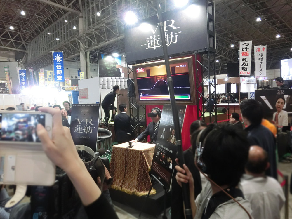 今回は海老ラーメンの麺屋えん寺コラボに加え、かの「VR蓮舫」を投入。仮想世界で蓮舫代表(当時)から約5分間の追及を受けて心拍数の変化を見るというゲームで、300分待ちまで行列が伸びる。一体どこが企画出したんだろう…。