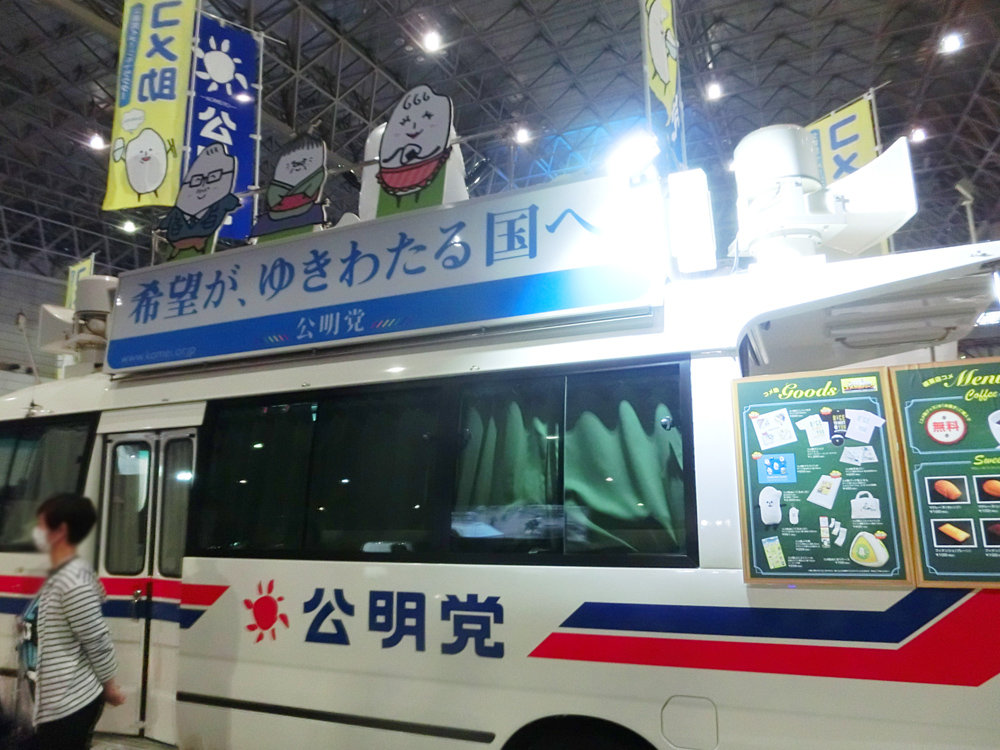 公明党は宣伝カーを改装してコーヒーとクッキー屋に。カレーの後に食べるには最適で、完全に自民党のオマケと化す。