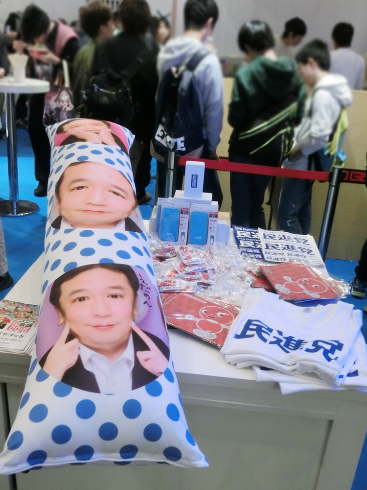 維新系(この時点では維新の党が消滅しており大阪維新の会)は出展なし。元公式キャラの民主くんはベビー民主くんとしてぬいぐるみで展示。また抱き枕といった(どうでもいい)グッズ類も。さらには せたが屋とコラボして、ブースで願い事を書くと醤油ラーメンが食べられるという謎展開に。