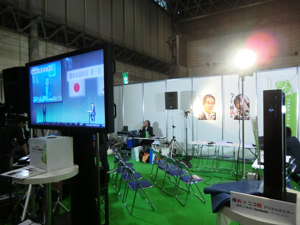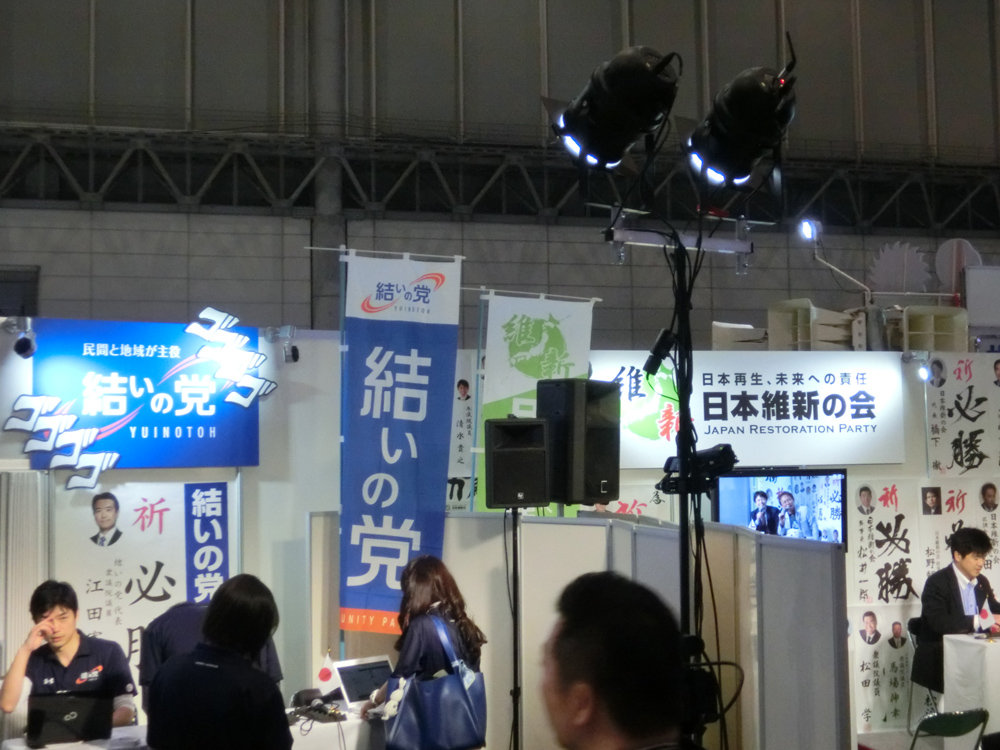 維新は後に合流する結いの党(みんなの党から分裂)と並びで小規模な出展。
