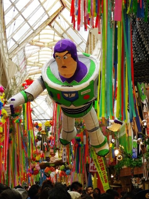 これは旧暦の七夕を祝うお祭りだそうで、アーケード街の中に地元の有志や学童の手によって作られた、巨大なハリボテが浮かぶ事でもおなじみなのです。
