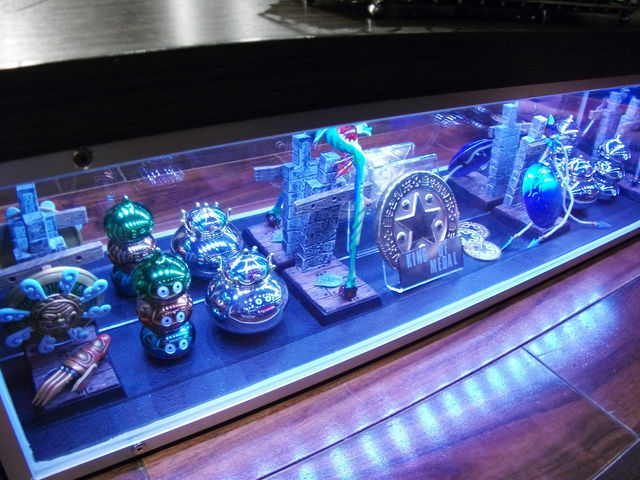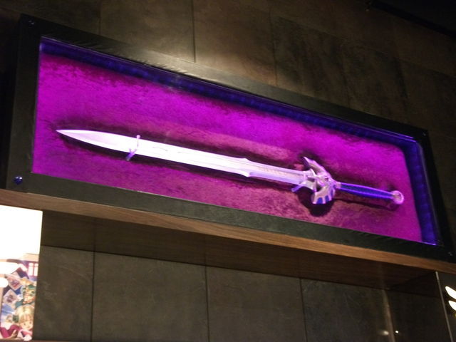 中身はというと、スタンディングバー形式で、ホラ、神田辺りの立飲み居酒屋をちょいと凝った造りにしたカンジ?壁にロトの剣と天空の剣が飾ってあったり、フィギュアがケースに陳列されてたり。