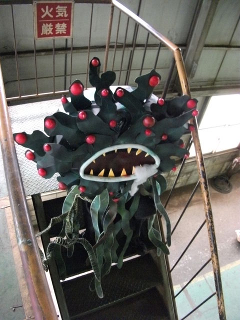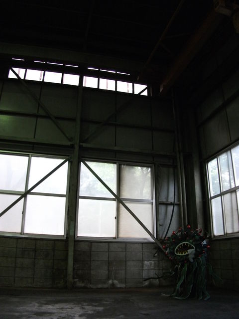 薄暗い工場の隅を使ってこんな怖い写真も。