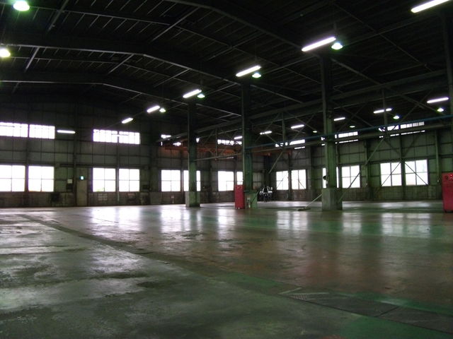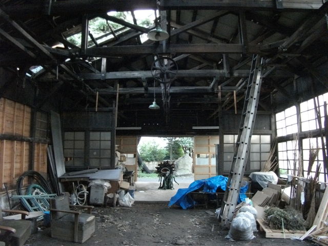廃工場スタジオ部分の内側。非常にホコリっぽいので、何人かでモップがけしました。