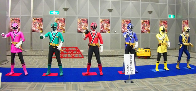ゴセイジャーとシンケンジャーの等身大人形が並ぶ。