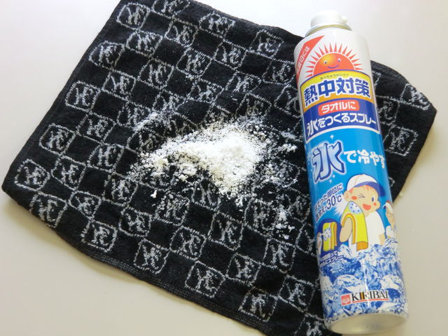 氷結スプレーは瞬間的に氷を作れるので、ハンカチなどを凍らせて体に当てると気持ちいいですが、アンダースーツを脱がないで使うには不便です。