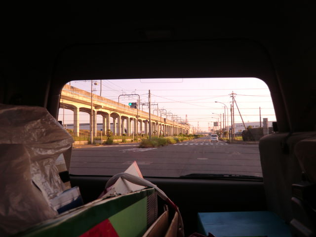 帰りの車内後部。夕日がちょっと、目に染みた、かも。